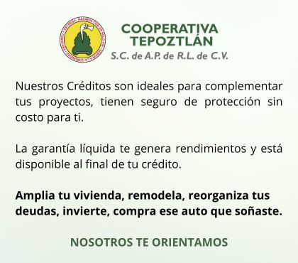En Cooperativa Tepoztlán, tu éxito financiero es nuestro compromiso. Obtén un crédito con nosotros y experimenta la diferencia de ser parte de una cooperativa que prioriza tu bienestar y el de la comunidad.